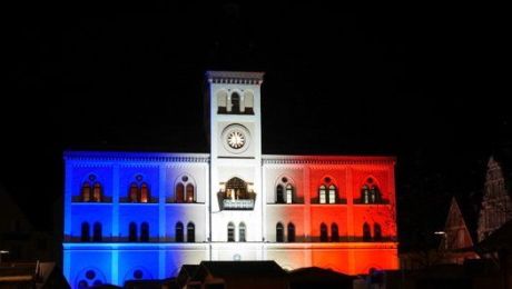 Farbiges Licht gegen die dunkle Angst, Pfaffenhofen zeigt Flagge. In den Farben der französischen Fahne, wurde gestern Abend das historische...