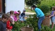 Wer beim Hopfenbrocken die meisten Dolden im Korb hatte, war Hopfenkönigin für einen Nachmittag beim Besuch der Ferienpasskinder auf dem Erlebnisbauernhof der...