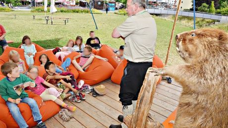 Auf die Spuren des Bibers begeben haben sich Grundschüler aus Scheyern kürzlich im Bürgerparkt auf der Kleinen Landesgartenschau in Pfaffenhofen. Dort stand Theo...