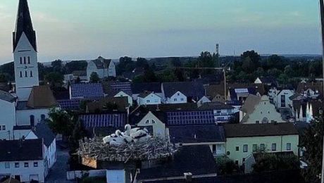Das ist ja eine tolle Überraschung: Es sind Drillinge, die das Adebar-Ehepaar gerade auf dem Dach des Reichertshofener Rathauses mühevoll mit Fröschen und Mäusen...
