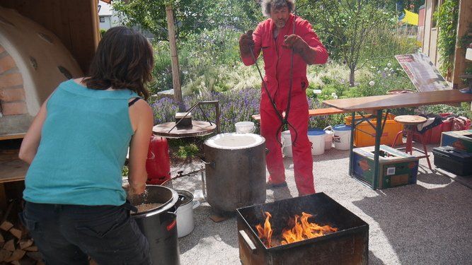Stefan Motzke zeigt Rakubrand auf der Gartenschau Pfaffenhofen