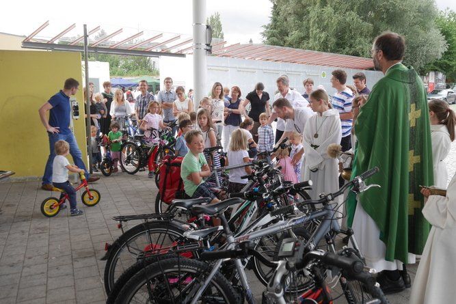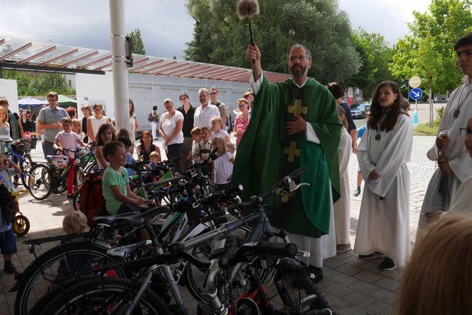 Anschließend zum Gottesdienst wurden, dann noch die Fahrzeuge der Kinder von Pater Benedikt geweiht. Eine allzeit gute und sichere Fahrt wünschte der begeisterte Geistliche, der auch noch eine kleine Geschichte aus seiner Jugend zum Besten gab. Nach dem Motto „Segnungen muss man spüren“, war auch in diesem Jahr der Weihwasserverbrauch immens.
