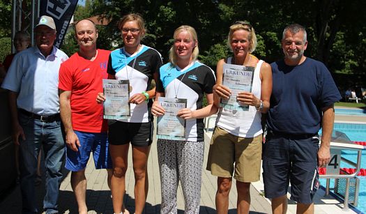268 Teilnehmer traten heuer zum 24-Stunden-Schwimmen an und stellten sich bei sommerlicher Hitze dem immer wieder spannenden Wettbewerb. Dabei schwammen sie eine beeindruckende Gesamtstrecke von 2.728.910m. Aus den Händen von Bürgermeister Reiser nahmen die Sieger Medaille wie Urkunde entgegen.