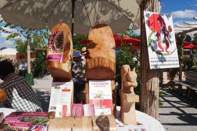 Mit seinem Lied der Hallertau und anderen zum Hopfen passenden Stücken, die er gewohnt gekonnt auf seiner Ziach begleitete, unterhielt er die endlos vielen Besucher am Landkreisstand. Vom Neumeier aus Rudelszhausen gab es Bio Haselnüsse, als Aufstrich mit Häppchen, oder pur. Das Freibier Bier kam von der Graf Thoerring Brauerei und dem Gräfliches Hofbrauhaus Freising. Die vielen Prospekte von den Freizeitangeboten rund um Freising fanden rasenden Absatz.