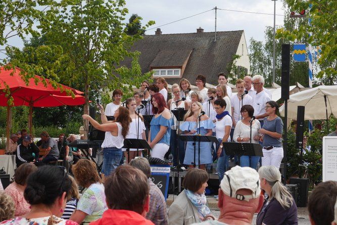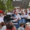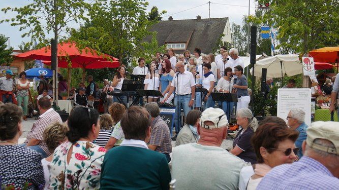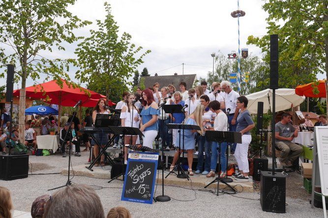 Die rund 40 Sänger*innen beglückten die Ohren der Besucher mit bekannten Schlagern, Rock- und Popballaden und aktuellen Hits, um mit der Vorankündigung zu sprechen. Ganze Heerscharen von Besuchern der Gartenschau, belagerten den Landkreisstand auf der umgebauten Volksfestfläche. Bei bestem Wetter, trällerten die Sommerbunt gekleideten Mädels bekannte Schlager unter das lauthals mitsingende Volk.