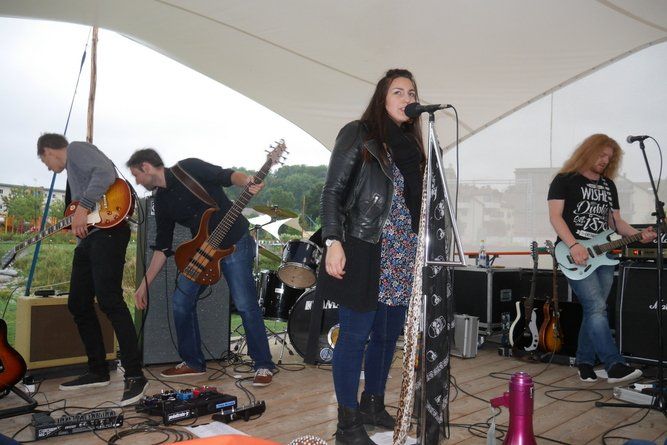 Bei schönem Wetter kann jeder, und prickelnd war es trotzdem, die WildOnes machten ihrem Namen alle Ehre. Die neuen selbstgeschriebenen Stücke gehen ins Ohr, das ist nichts Nachgespieltes, sondern gut erarbeitete Rockmusik. Der zweite Gitarrist hat der jungen Truppe echt noch gefehlt, hinter der charismatischen Lead Sängerin, Foxxy (Vocals/Percussion), bauen die drei E-Gitarren ein Klangteppich der Extraklasse. Max (Bass Guitar) mit seinem edlen Bass steht im Mittelpunkt und gibt die Line, Schorsch (Guitar/Backing Vocals), ist nicht nur optisch der Inbegriff eines Rockstars und Kosi (Guitar) zeigt mit seinen Solos warum er bis jetzt gefehlt hat. Tom (Drums/Percussion/Backing Vocals), mit seiner Schießbude, steuert eher von hinten das Geschehen und schiebt die Band mit seinem Schlagwerk stetig nach vorn.