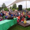Theater auf der Gartenschau Pfaffenhofen, zum Geburtstag viel Glück, das Zelt im Bürgerpark ist dicht umlagert, ein Huhn feiert Geburtstag. Schneewittchen, das schönste Huhn im Dorf, feiert schon seit Monaten jeden Tag Geburtstag und an' s Eierlegen denkt keiner mehr.