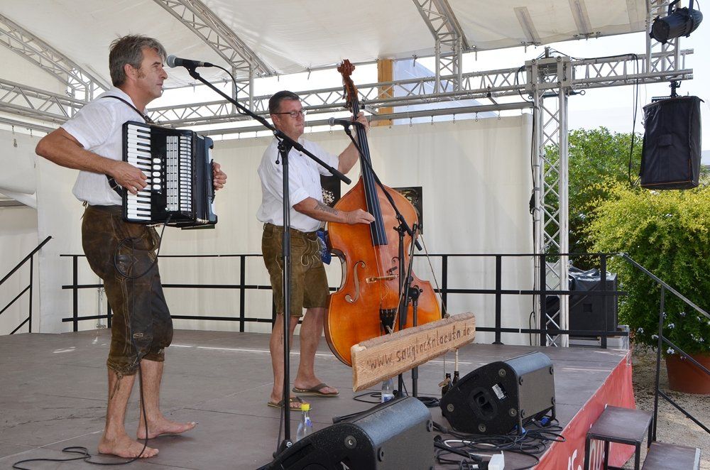 Gewagte Gstanzl, flotte Landler oder unterhaltsame Zwiefache – das Duo „Sauglocknläutn“ beherrscht sie bis zur Perfektion alle. In der Tradition früherer Wirtshausmusikanten, aber dann doch anders, spielten sich Ritsch Ermeier mit Quentschn und Bassist Walter Zinkl auf dem Gartenschau- Festplatz in die Herzen der Zuhörer.