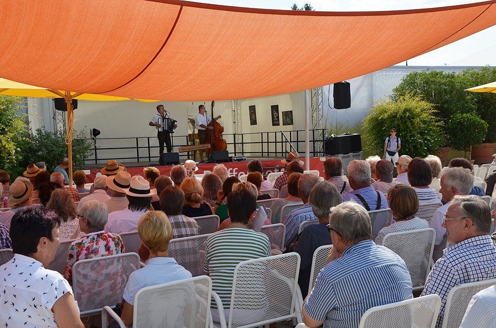 Neue Texte zu alten Liedern, Volkslieder vermischt mit anderen Musikstilen, die Volksmusik-Kabarett-Formation aus der Hallertau Das kam beim Publikum bestens an. Viele Plätze blieben zwar leer, doch das war lediglich der herabbrennenden Sonne geschuldet. Wer konnte, schnappte sich einen der schattigen Plätze und so kam es, dass sich die Musikbegeisterten um die Sparkassenbühne herum doch sehr verstreuten. Ritsch und Walter nahmen es mit Humor und so wurden die insgesamt drei jeweils halbstündigen Vorstellungen am gestrigen Dienstag trotzdem ein voller Erfolg.