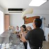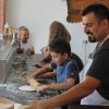 In der Pizzeria Calabria konnten sich zwölf Kinder in jeweils zwei Sechsergruppen aufgeteilt, unter der Aufsicht des Chefs höchst persönlich ihre eigene Pizza machen. Dass das jedoch gar nicht so einfach werden sollte, zeigte sich schon gleich am Anfang. Allein schon beim Formen des Pizzateiges, den Rexhep Ajvazi als einer der einzigen in der Hallertau komplett ohne Hefe herstellt, hatten die meisten Probleme. Trotzdem versucht er, allen Kindern zu zeigen, wie man den Teig ausrollt, formt und woran die Kinder am meisten Spaß hatten, wie man ihn hochwirft, um ihn vom übrigen Mehl zu befreien.