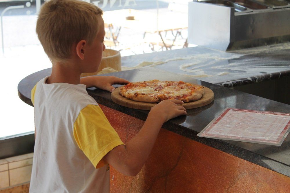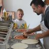 Da das nur wenige schafften, zeigte der Chef, wie man die fehlenden Pizzaböden innerhalb von Rekordzeit vorbereitet, die die Kinder dann belegen und nach Belieben geschmacklich verzieren sollten. Neben den Standardzutaten wie Tomatensoße, Käse, Salami oder auch Schinken, gab es ebenso eine große Auswahl an „Exotischem“. Oliven, Ananas, Peperoni, und Pilze waren aber die Favoriten.