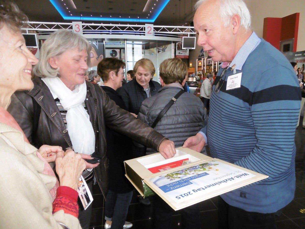 Erste Vorsitzende der Alzheimer-Gesellschaft Pfaffenhofen, Helga Inderwies erklärte im Gespräch, dass der Verein seit 2014 neben dem Hauptact, dem Film, im Foyer des Kinos auch eine Tombola veranstaltet. „Wir verkaufen 150 Lose zu einem Preis von je zwei Euro. Dafür stehen 50 Gewinne bereit. Die Gewinne sind vielfältig und setzen sich alle mit dem Thema Demenz auseinander. Spiele, Bücher, Broschüren. Des weiteren sponserte heuer die Buchhandlung Osiander Buchgutscheine.“ berichtete Inderwies.