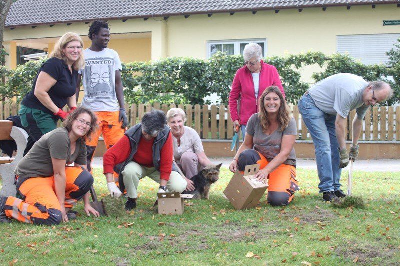 Als weiteres neues Arbeitsfeld wurde jetzt vor einigen Tagen die kleine Grünfläche am Gießgraben ins Visier genommen mit dem Ziel, hier im Frühjahr endlich Blumen und nicht nur Rasen zu sehen. Bei einer Begehung hatten die Projektmitglieder die alte Sitzbank gesehen, die schon recht herunter gekommen war – sie wurde inzwischen vom Bauhof ausgetauscht; außerdem traf sich ein Teil der Gruppe zu einer Zwiebelpflanzaktion. Zusammen mit der gemeindlichen Grünflächenpflege war die Arbeit schnell erledigt. Die Mischung besteht aus botanischen Tulpen, Märzenbecher und Traubenhyazinthen und wird im kommenden Frühjahr ihre Blüten öffnen.