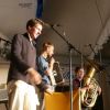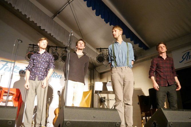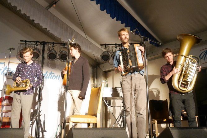 Ein gelungener Wurf ihre Baazerei, aber auch die Wäsche aus früherer Zeit trocknete wieder. „Wie schön ist das eigentlich?“ oder anders „Wie schön ist das EIGENTLICH!“ eine Frage in der Antwort, über die sich bei Posaunenklängen, gemischt mit Akkordeon, Tuba und Gitarre, trefflich meditieren ließ. Kofelgschroa ist anders als normal, etwas DADA im Text und ein uriger bayerischer Jazz. Als wollten sich die vier jungen Männer auf der Bühne erst einmal einspielen, zogen sie langsam und stetig die Lautstärke im Zelt nach unten.