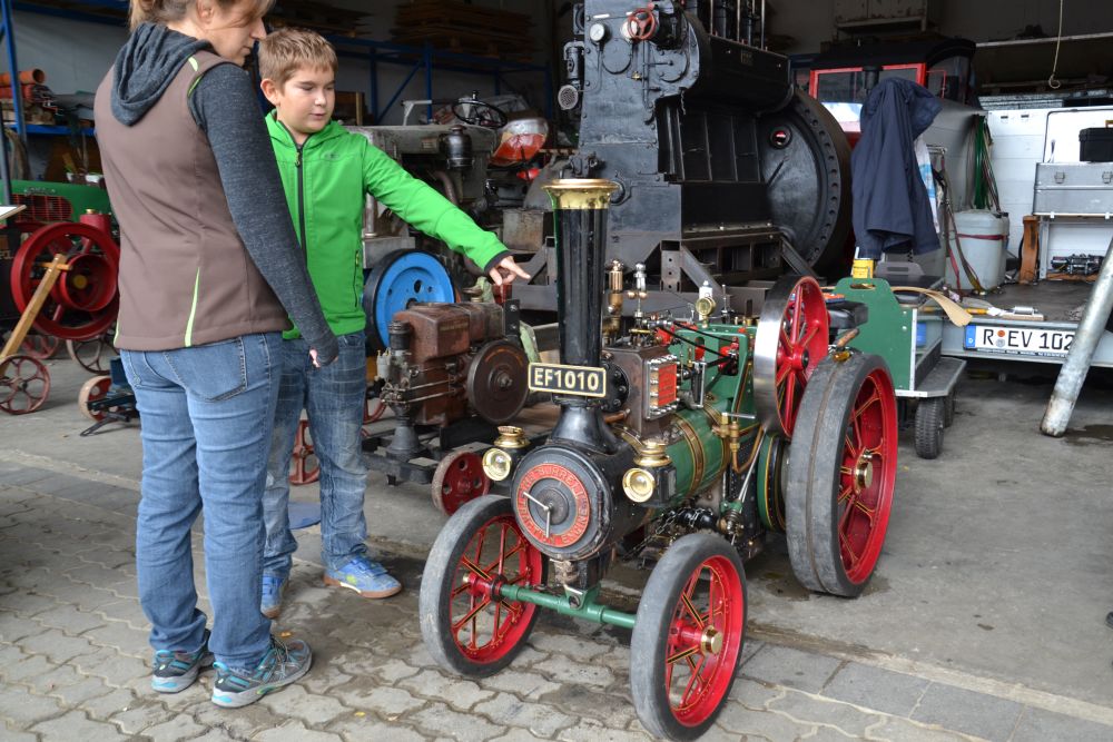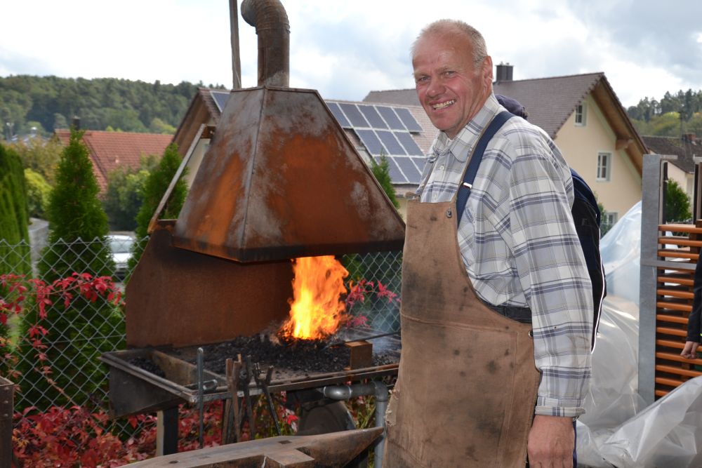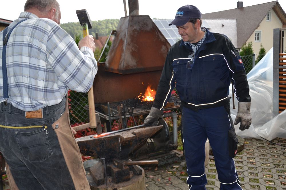 Doch nicht jedes Jahr gibt es das selbe Programm – so wurde in diesem Jahr keine alte Dreschtechnik mit Dreschmaschine und Dreschflegeln vorgeführt, wie die Jahre zuvor, sondern es gab heuer viel alte Technik zu bestaunen. Neben alten Traktoren, die aus dem Museumsbestand ausgestellt wurden, waren in diesem Jahr besonders alte Antriebsmaschinen zu bestaunen, die zum überwiegenden Teil von Josef Habermann aus Niederlauterbach zur Verfügung gestellt wurden – er besitzt gut 70 Maschinen dieser Art in den verschiedensten Größen, die alle in seiner Halle in Niederlauterbach stehen. Damit machten Sie den Kindern und Erwachsenen eine große Freude, konnten sie doch entdecken, wie in früheren Jahren in der Landwirtschaft gearbeitet wurde. Ein besonders auffälliges Diesel-Monster stand im Hof: eine alte Anlage, die früher in einer Raffinerie für die Notwasserversorgung bis Anfang der 90er Jahre in Betrieb war, die einen ohrenbetäubenden Lärm verursachte und teilweise schwarze Rauchwolken in den Himmel stieß, als sie zur Demonstration angelassen wurde. Doch auch altes Handwerk wurde gezeigt: ein Schmied zeigte seine Schmiede-kunst an einer alten Esse und bearbeitete das glühende Metall.