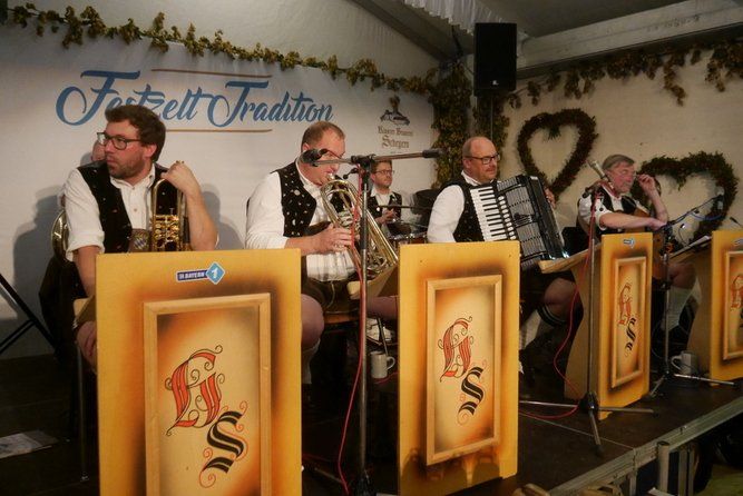 Im Stiftl Zelt tobte der sprichwörtliche Bär, die Eslarner Showband heizte dem Publikum so richtig ein. Viele waren in Tracht gekommen und auf den Tischen waren Lederhosen und Dirndl eindeutig in der Überzahl. Die Bar war schon um 21:00 kaum mehr erreichbar, wer dringend aufs Klo musste, war mit einem kleinen Umweg gut beraten.