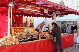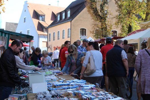 Die Geschäfte hatten am Nachmittag geöffnet und lockten die Besucher nicht nur mit Kaffee und Kuchen, sondern auch mit vielen tollen Angeboten und Aktionen. Fieranten und Flohmarktstände kunterbunt durcheinander gewürfelt säumten die Hauptstraße und boten ihre Waren feil. Kulinarisch war fast alles vertreten, von Grillwürstl, Räucherforellen, Tiroler Speck und den verschiedensten Käsesorten. Man konnte die neuesten Automodelle auf dem Marktplatz und dem Parkplatz des Schlossbräukellers bewundern. Im Pfarrheim wurde Kaffee und Kuchen angeboten und der Erlös aus dem Verkauf kam der Kirchenrenovierung in Haslach zugute. Es war sozusagen ein perfekter Herbstmarkt-Tag und die Besucher genossen den herrlichen Tag.