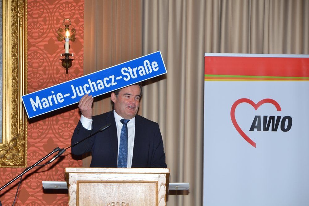 Stellvertretend für den Landrat sprach Altbürgermeister Hans Prechter und betonte, dass die AWO Werte vertrete, die einstmals aber auch noch heute ihre Berechtigung hätten und ergänzte bildhaft: „Die Arbeiterwohlfahrt bringt Licht und Sonnenschein in den Alltag.“ Die AWO bezeichneter er überdies als unverzichtbar für das Sozialgefüge. Pfaffenhofens Vizebürgermeister Albert Gürtner (FW) ging in seiner Rede auch auf die Vergabe des Straßennamens für das Baugebiet Heißmanning-Weingartenfeld zu Ehren der 1956 verstorbenen AWO-Gründerin - sie rief die Organisation am 13. Dezember 1919 ins Leben - Frauenrechtlerin und Sozialpolitikerin Marie Juchacz ein. Sie sei das starke Sinnbild der Frauenbewegung gewesen. Unter anderem habe sie für die Gleichstellung der Frau und das Frauenwahlrecht gekämpft.