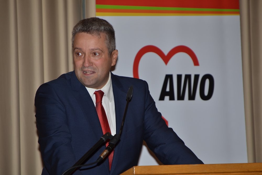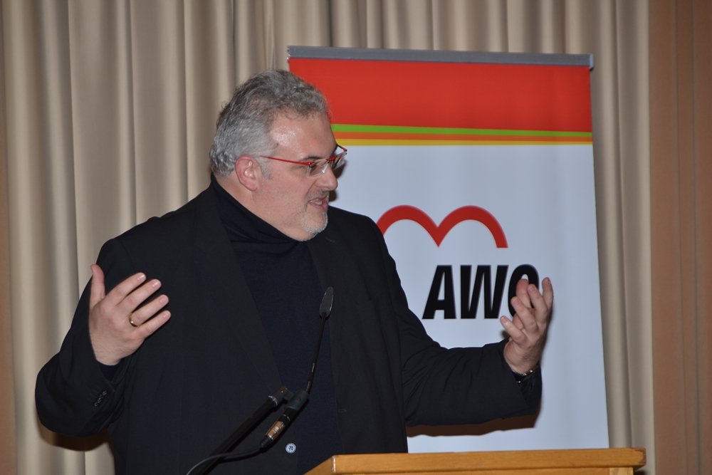 Den Festvortrag hielt der Landesvorsitzende der AWO in Bayern, Professor Thomas Beyer. „Deutschland ist ein reiches Land, aber die Ungleichheit nimmt zu“, stellte er fest. Armut zeige sich oftmals erst auf den zweiten Blick und sei für viele Menschen wieder ein Thema. „Die Arbeiterwohlfahrt hat nichts an ihrer Bedeutung verloren!“ Beyer sprach Mut zu, diese Arbeit nicht zu vernachlässigen. Es gehe auch darum, Hilfe zur Selbsthilfe anzubieten. Die AWO sei mit fast 30.000 hauptamtlichen Mitarbeitern sowie zahlreichen Ehrenamtlichen - die AWO hat 63.000 Mitglieder, darunter mindestens 13.000 aktive - hochprofessioneller sozialer Dienstleister und betreue unter anderem über 10.000 Plätze in stationären Pfegeeinrichtungen und mehr als 28.000 Plätze in Kindertagesstätten. Die zentrale Forderung an die Politik sei jene nach einer unabhängigen Grundsicherung und Renten, von denen Menschen nach ihrem Erwerbsleben gut und in Würde leben könnten. Dafür mache sich der Landesverband stark.
