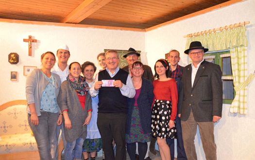 500 Euro bekam der anwesende Pfarrer Werner Gallmeier aus den Händen von Franz Niederhammer für die Indiohilfe, ein Projekt, das von ihm und seinem Bruder 1981 gegründet wurde, überreicht. Mit der Zeit kam bereits eine ordentliche Summe zusammen, mit der vor Ort viel Gutes für die Indios getan werden konnte. Pfarrer Werner Gallmeier bedankte sich mit einer kurzen Ansprache und herzlichen Worten für die Hilfe. „Das Geld kommt drüben auch an“, versicherte der Geistliche dankbar. Gallmeier betonte aber dennoch, dass auch wenn der Theaterverein nicht mehr spenden würde, er trotzdem die Vorstellung besuchen würde, „weil ihr halt einfach so gut spielt!“.