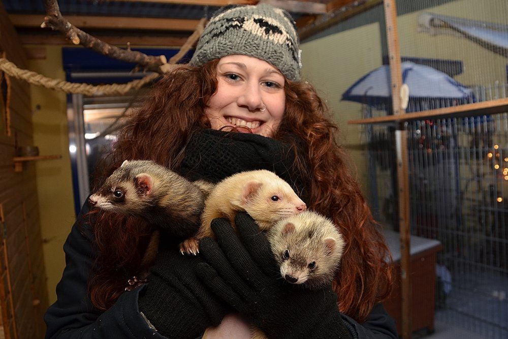 Nicht vermittelt werden brauchten allerdings die drei Frettchen Balou, Trixie und Mila. Sie waren ursprünglich in Händen überforderter Tierhalter und waren nur auf Besuch in der Tierherberge. Zusammen mit ihrer Betreuerin vom Verein „Alpenfrettchen“ warben sie für artgerechte Tierhaltung und dienten dazu, auf Pelztierfarmen aufmerksam zu machen. In denen fristen sie oftmals unter verheerenden Umständen ihr kurzes Dasein. So mahnte Frettchenhalterin Katharina, die Tiere nicht zu leichtfertig aufzunehmen. „Viele Frettchen werden falsch gehalten, sie sind sehr anspruchsvoll und gehören keinesfalls in Kleinkinderhände!“ Selbst Tierheime könnten ihnen in der Regel keine adäquate Betreuung und Unterkunft bieten.