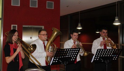 Mit dem Empfang und dem anschließenden großen Buffet bedankte sich der Markt Au bei den zahlreichen ehrenamtlichen Helfern für ihr Engagement. Das Blechbläserquartett „Ohrnwuzla“ mit Magdalena Thumann, Michael Dreier, Marco Moosbauer und Konstantin Hofer sorgten dieses Mal für die musikalische Umrahmung des Abends. Das Buffet lieferte die Familie Selmayer vom Huberhof und für die Getränke sorgte die Gaststätte „Zum Tapferen Schneiderlein“.