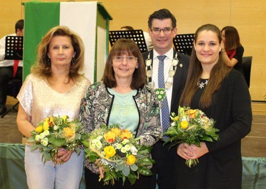 Mit einem Blumenstrauß bedankte sich der Bürgermeister bei seiner Marktratskollegin Erika Wittstock-Spona für die Organisation des Ehrenabends und bei seinen Mitarbeiterinnen Jutta Bauer und Sandra Huber für die Servicearbeiten.