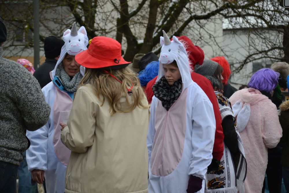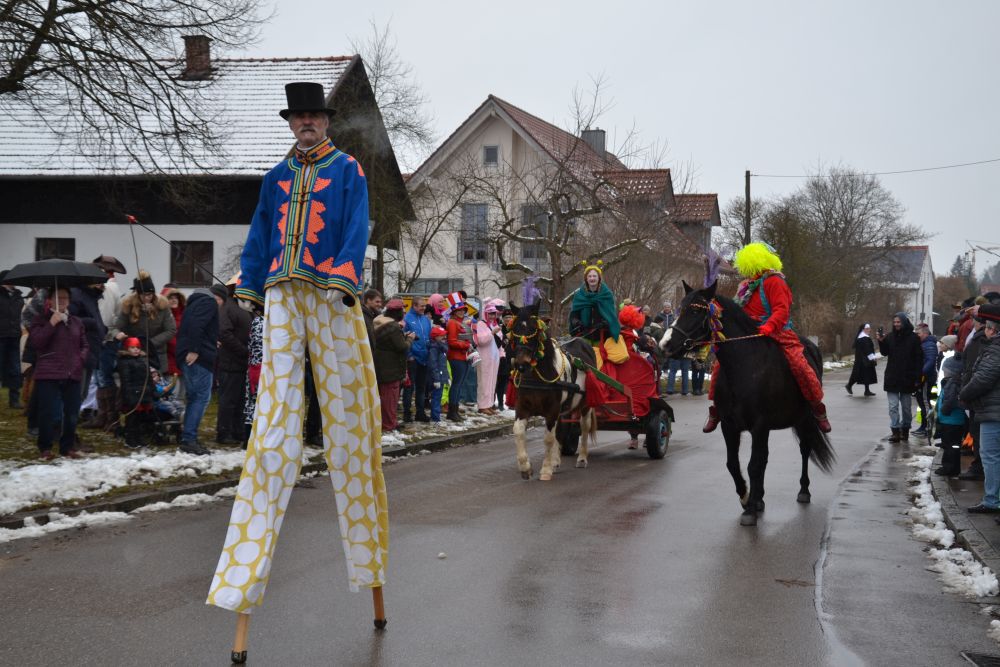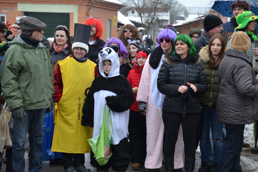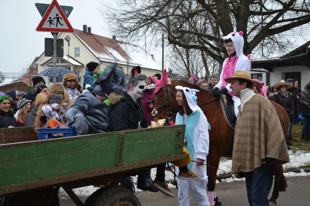 Die vielen oft verkleideten Zuschauer groß und klein an den Straßenrändern bejubelten die Festwagen, von denen es natürlich laufend Süßigkeiten regnete, die die Kleinen gar nicht so schnell aufsammeln konnten, bevor der nächste Schub kam. Auf die Frage, weshalb es denn nur alle 10 Jahre einen Faschingsumzug geben würde, beantwortete die Vorsitzende des Obst- und Gartenbauvereins, Stefan Meier, ganz einfach mit „…weil wir so klein san“.