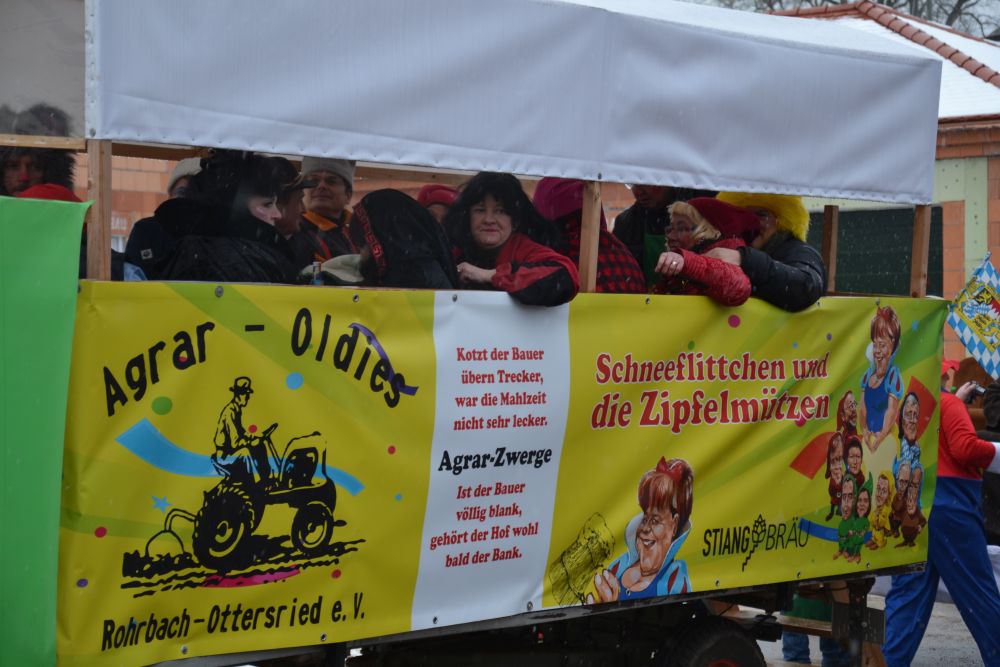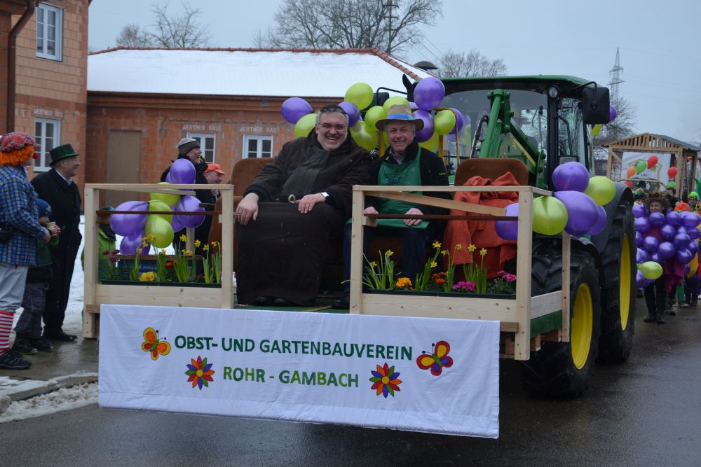 Die Gambacher Wehr war davon überzeugt, dass es für sie am besten ist, sich selbst ein Feuerwehrauto zu bauen. Die Ottersrieder Agrar Oldies hatten einen Wagen mit professioneller Karikatur der Kanzlerin (Schneeflittchen) und ihren sieben Polit-Zwergen (die Zipfelmützen). Der Obst- und Gartenbauverein Rohr/Gambach war mit einem blumengeschmückten Traktor und bunter Begleittruppe unterwegs, und Bundestagsabgeordneter Erich Irlstorfer ließ es sich nicht nehmen, beim Obst- und Gartenbauverein vorne mit dabei zu sein.