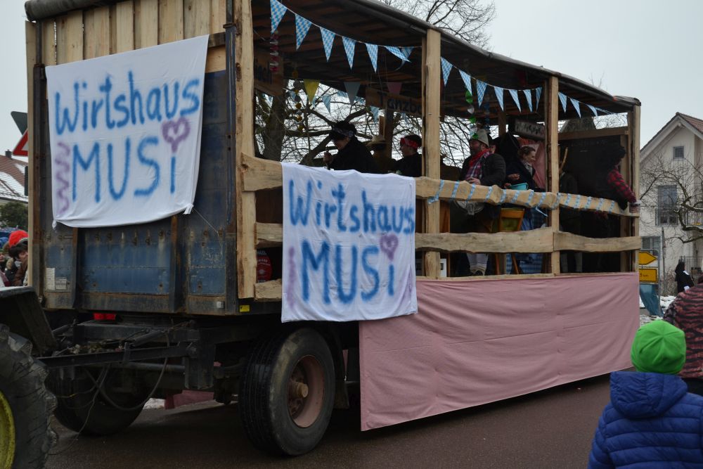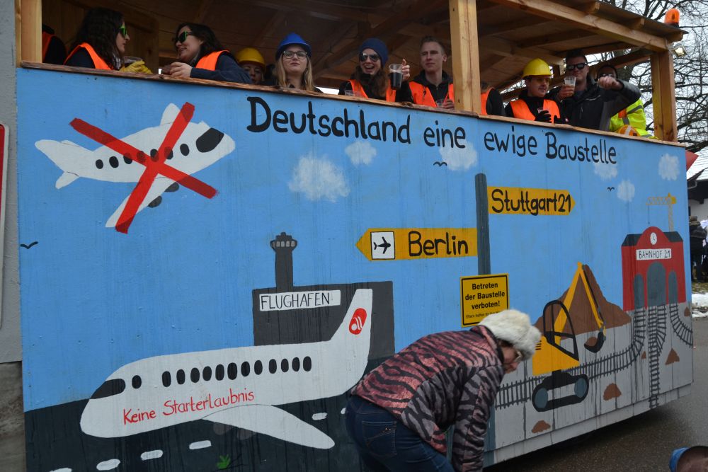 Die Eichenlaubschützen Rohr/Gambach präsentierten die Alternative zur Massentierhaltung in Eschelbach, außerdem gab es eine Wirtshaus-Musi, die es schwer hatte gegen die laute Musik von den Festwagen anzukämpfen und Königsfeld beklagte die deutschen Dauerbaustellen (Flughafen Berlin und Stuttgart 21).