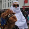 Dass es den Umzug gibt , ist dabei alles andere als eine Selbstverständlichkeit. „Das geht nur, wenn alle mithelfen – Bauhof, Verwaltung, Gewerbeverband und natürlich auch die Manchinger Vereine“, erklärte Bürgermeister Herbert Nerb vor Beginn des Zuges. Dabei sind es nicht nur die Manchinger , die den Ort am Faschingssonntag in den Ausnahmezustand versetzen. Die Volleyball Damen des ESV Ingolstadt sind jedes Jahr als Fußgruppe mit von der Partie, d ieses Mal griffen die Mädels tief in den Farbtopf und setzten dem grauen Schmuddelwetter Flower Power und VW Busse entgegen. Auch der große LKW der Narwalla Ingolstadt durfte nicht fehlen. Zusammen mit den Manschukanern sorgten sie für eine Portion königlichen Blutes in der Faschingsparade.