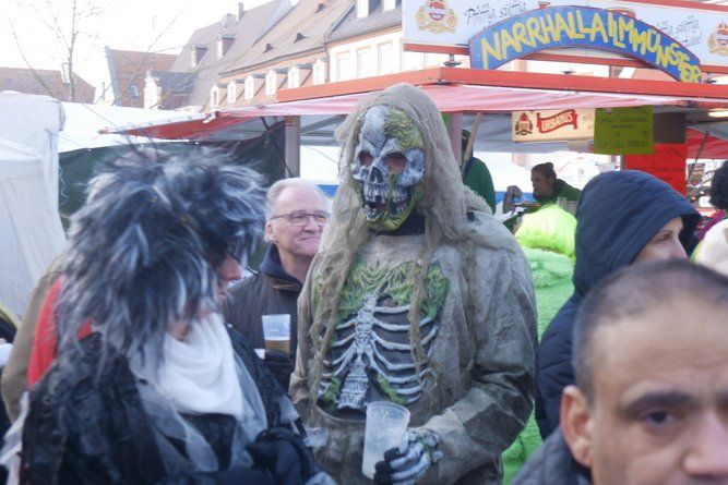 Überwiegend kostümiert waren die Gäste auf den kalten aber sonnigen Hauptplatz gekommen. Der große Run war etwa um 14:00 Uhr, ab da wurde bis zur einbrechenden Dunkelheit gefeiert. Schwere alkoholbedingte Ausfälle wurden nicht überliefert, es war entsprechend viel, gut gekennzeichnete Aufsicht unterwegs. An den Eingängen wurde auf mitgebrachte Getränke gefilzt und schon sichtbar unsicheres Publikum abgewiesen.