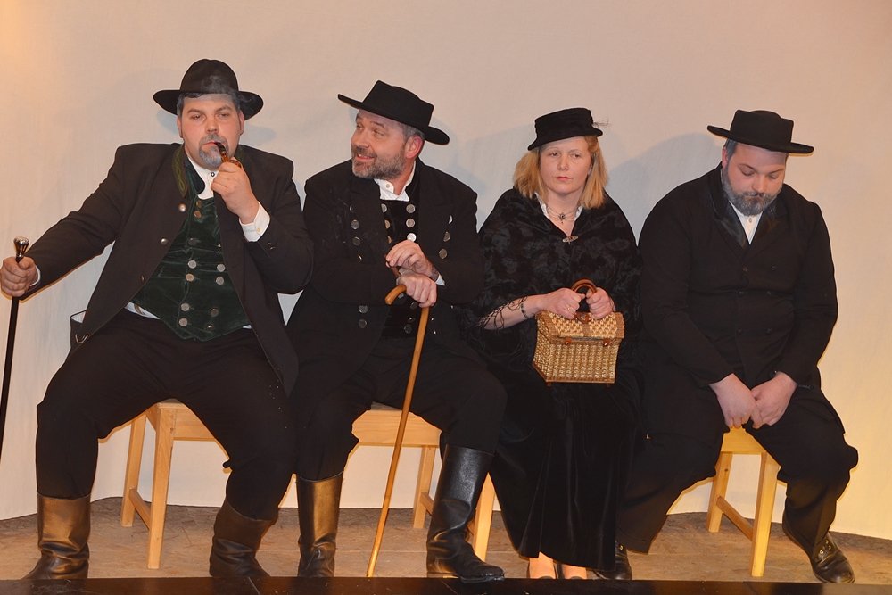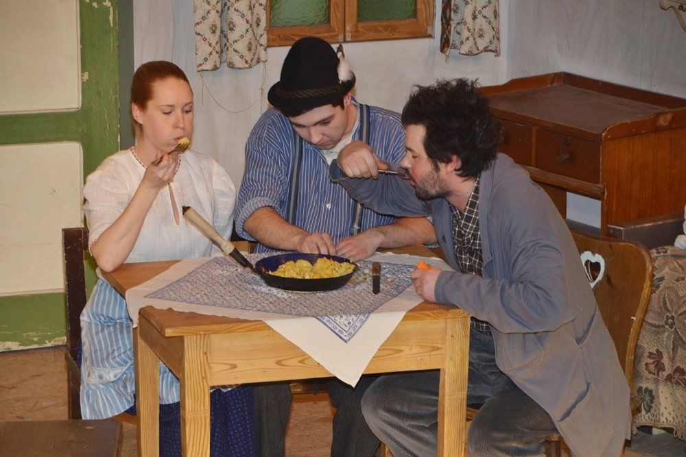 Garniert wird das Stück mit weiteren ausdrucksstarken Charakteren: Da ist Erbmosers keifendes Eheweib Wallburge (Agnes Frühtrunk), der nuschelnde Karnickelzüchter Haserer (Michael Kohlhuber) und nicht zuletzt Sachlers Frau Traudl (Carina Kohlhuber), die ihrem Mann die Treue hält. Im Geschehen spielen heiße Kartoffeln und ein totes Kaninchen noch eine besonderer Rolle, doch darüber soll hier nicht mehr verraten werden.