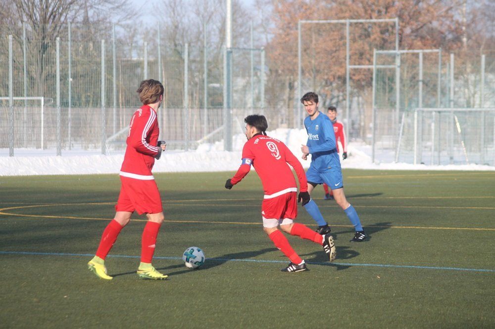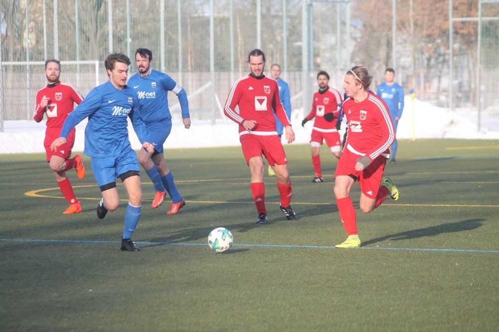 Der TSV Wolnzach, der zu Beginn der Saison 2017/2018 auf Anfrage des BFV in die Kreisklasse Freising wechselte, belegt dort aktuell einen guten siebten Platz mit vier Punkten Vorsprung auf den Tabellenachten. So wartet auf die Mannschaft von Markus Ertl, der mit seinem MTV auf dem 13. Tabellenplatz in der Pfaffenhofener Kreisklasse steht, keine leichte, aber eine machbare Aufgabe am Anfang der Vorbereitung. Trotz der Ungereimtheiten in der Winterpause, die einige Spielerwechsel zur Folge hatten und einiger Ausfälle für das Freundschaftsspiel, zeigten die Pfaffenhofener eine ordentliche Partie. Beide Mannschaften taten sich anfangs schwer auf dem gefrorenen Kunstrasen ins Spiel zu kommen, doch nach kurzer Abtastphase wurde das Spiel interessanter. Auf beiden Seiten gab es gute Gelegenheiten, die besseren hatte jedoch der TSV Wolnzach. Die Gäste zeigten vor allem offensiv bereits gute Spielzüge und profitierten auch durch individuelle Fehler des MTV. Außerdem erarbeiteten sich die Wolnzacher viele Standards, durch die sie letztendlich auch kurz vor der Halbzeit in Führung gingen. Nach einem Freistoß von Thomas Werther netzte Kevin Schmitt den Ball zum 1:0 aus kurzer Distanz ein.