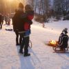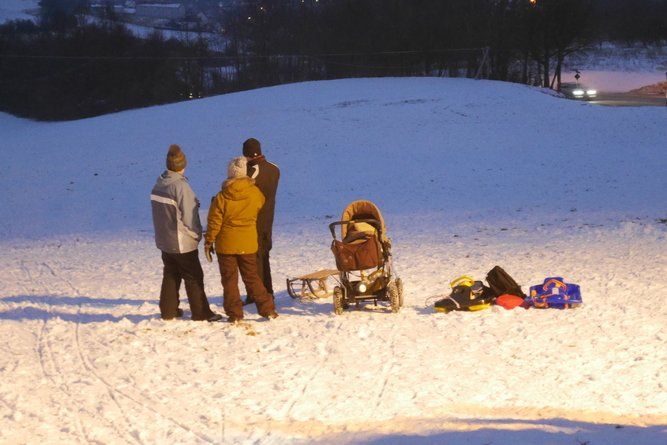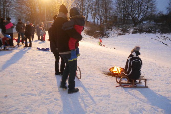 Dick in Schneeanzüge gepackt, mit Schlitten und sonstigen rutschbaren Fahrzeugen ausgerüstet, ging es den Hügel der Weiberrast bei der Tierherberge hinunter. Als besondere Attraktion war ein Pferdeskilift am Werk. Wer mutig genug war, konnte sich von Albert Wilhelm und einem seiner straken Rösser den langen Schneeberg hochziehen lassen.