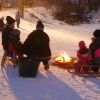 Heiße Musik und ebensolche Getränke wurden im geschützten Zelt auf der Kuppe serviert. Auch die die warmen Würsteln, fanden reißenden Absatz. Der eisige Wind verbrauchte viel Kraft die nachgetankt werden musste. Eine Discobeleuchtung und offenes Feuer verwandelte den bekannten Platz an der Wasserreserve in eine Event-Arena.