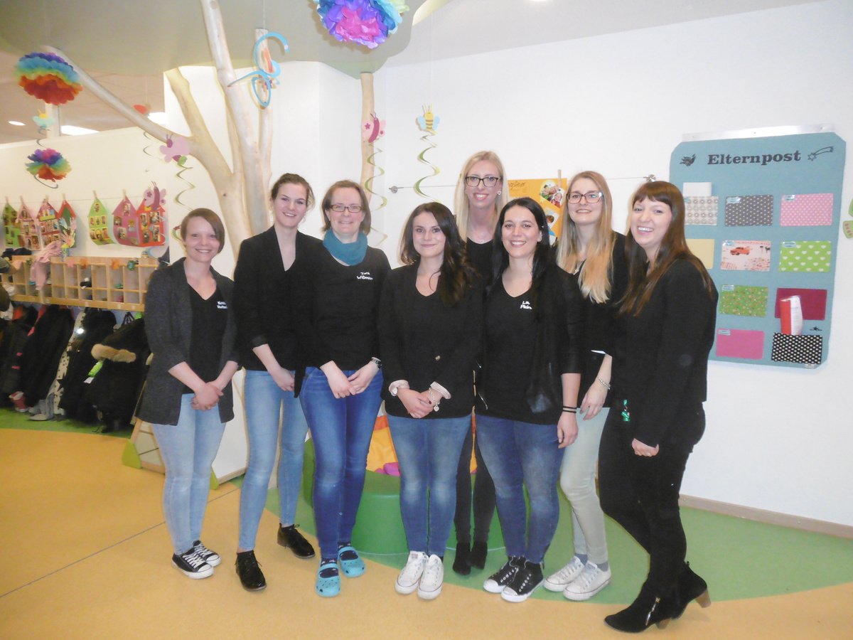 v.l.n.r.: Kirstin Retschke, Eva Summerer, Jana Wißmann, Krippenleiterin Eva Bernert, Julia Hainzinger, Laura Pleiner, Kathi Geiger, Tina Bichler