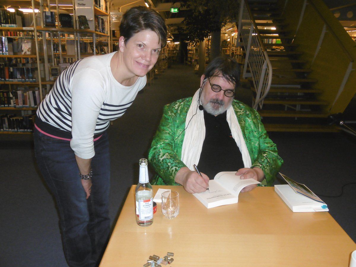 Eine der Zuhörerinnen, die sich während der Pause das erworbene Buch signieren ließ