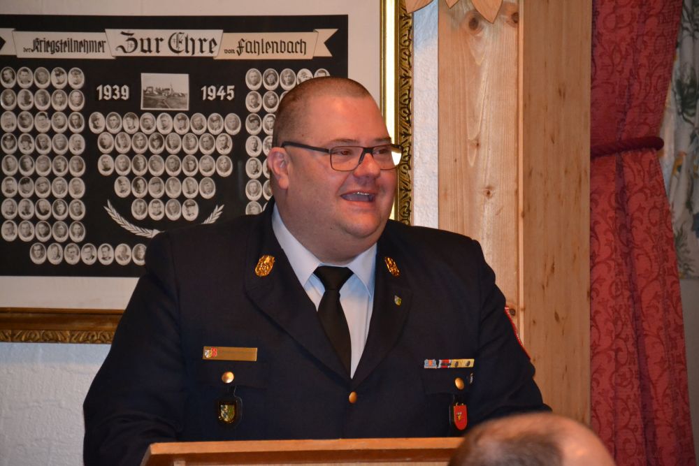 Bürgermeister Keck ging auf den Bedarfsplan ein und unterstrich, dass endlich eine Diskussion über das Feuerwehr-Gesamtkonzept begonnen habe und die früheren Differenzen zwischen den Ortsteilwehren geringer geworden seien. Für eine wirklich optimale Lösung brauche man Zeit, aber „wir schaffen das!“. Die Gemeinde wisse zu schätzen, dass die Professionalität gestiegen sei und er sicherte den Fahlenbachern den geplanten Anbau am Feuerwehrhaus zu, sobald der Haushaltsplan beschlossen sei. Keck dankte vor allem für die vielen ehrenamtlichen Stunden, die die Feuerwehrleute bei Einsätzen, Übungen und Schulungen erbracht hatten.