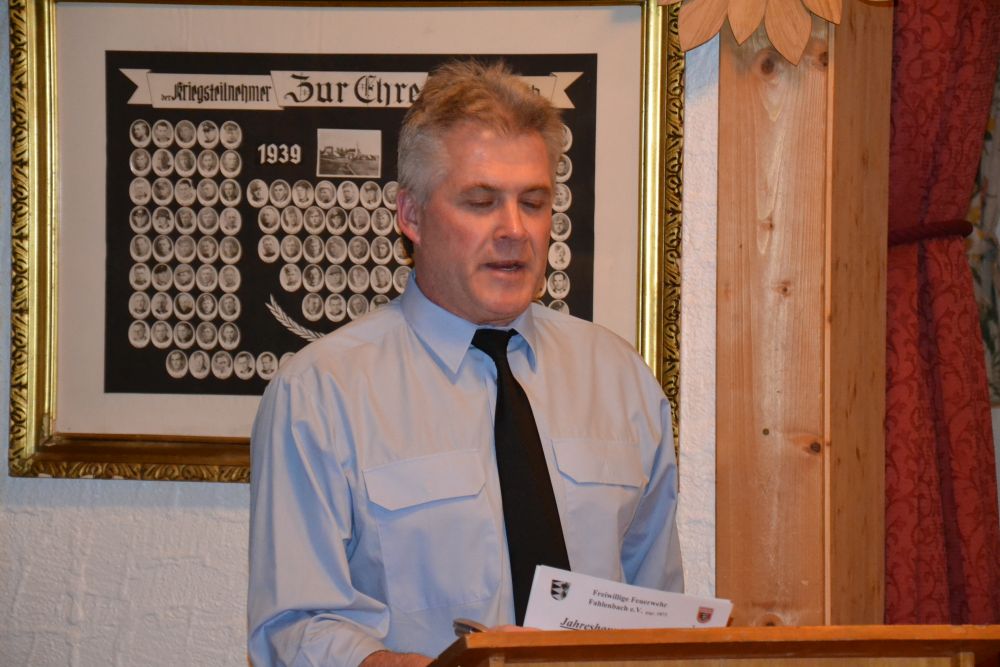 Vereinsvorsitzender Mario Öxler ging in seinem Jahresbericht auf die vielen Veranstaltungen ein, wie Teilnahme an verschiedenen Treffen anderer Wehren, Maibaum- und Christbaum-Aufstellung, das Dorffest, gemeinsame Gottesdienste oder Feiern. Von den insgesamt 125 Vereinsmitgliedern waren hatten sich viele beteiligt; aktiven Feuerwehrdienst leisten 47 Mitglieder; die Jugendgruppe besteht aktuell aus 5 Mitgliedern und ist auch sehr aktiv, wie Jugendvertreter Matthias Schneider später berichtete. Öxler verwies stolz auf die neue Webseite der Feuerwehr, die immer sehr aktuell ist sowie den Auftritt in den „Social Medias“. Er dankte allen, die sich aktiv am Vereinsleben beteiligt hatten sowie den Damen der Wehrmänner, die sich bei Festen immer um die Verpflegung kümmern, außerdem der Gemeinde Rohrbach, den Bürgermeistern sowie seinen Vorstandskollegen für die gute Zusammenarbeit.