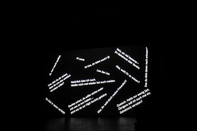 Hippe Kleidung, Partys mit Alkohol und Drogen, Cybermobbing, Geltungssucht, Geheimnisverrat und Einsamkeit, klassischer Dramenstoff, via Chat in unsere Zeit verlegt. Luisa Dietsch als Emma, bringt mit eigener Stimme einen musikalischen Akzent, der schon in der Anfangsszene mit "Hallelujah" von Leonhard Cohen, im schlichten Bühnenbild mit Video Einspielern, für Gänsehaut sorgt. Mohamed Al Shomar, der als Nizzar in seiner arabischen Muttersprache agiert, zeigt, das er zwar dazugehört, im Ernstfall aber schnell zu den ersten Mobbingopfern zählt. Philipp (Josef Brinkmann), Sandra (Julia Gruber), Lola (Julia Apel), Anna (Hanna Hamacher) und Natascha (Ella Irchenhauser) spielen eine glaubwürdige, interagierende Gruppe, die nicht das erste Mal zusammen auf der Bühne steht.