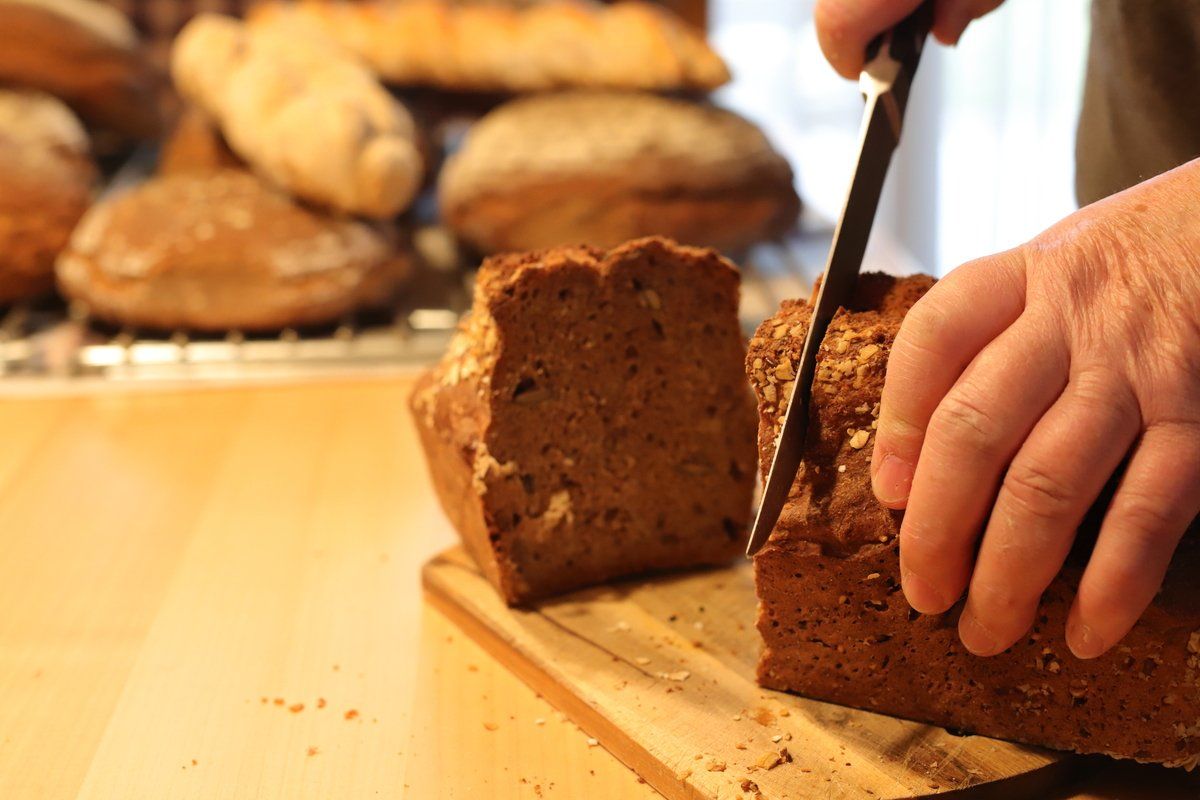 „Das Brot muss hohl klingen, dann ist es fertig.“ Wie aber schmeckt es nun? Nach dem Auskühlen schneidet Gertraud den ersten Laib mit einem großen Brotmesser in der Mitte durch. Der Duft, das feine Aroma des Sauerteigs gepaart mit den unterschiedlichen Gewürzen steigt in die Nase,der Mund wird wässrig!