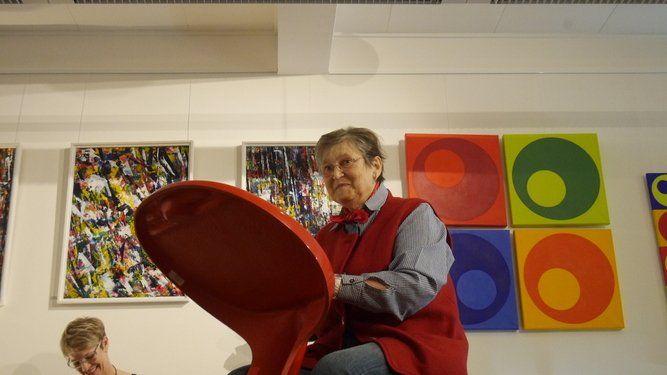Den Abschluss des gelungenen und gut besuchten ersten Lesungsabend bildete Galeristin Lea Heib mit dem Text „Für mich soll's rote Rosen regnen“ von Hildegard Knef. Alles wurde auf dem "Dichter Stuhl" Pegasus von Günter Betzig vorgetragen! Den Rahmen bildete die laufende Ausstellung "Kunst-Stücke" mit Arbeiten u.a. von Heike Habl, Markus Jordan, Andrea Koch und Walter Heidenreich.