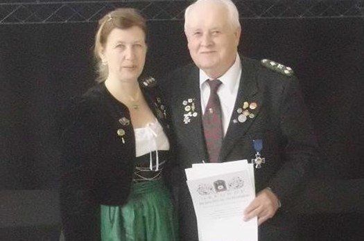 Beim Bezirksschützentag des Bezirkes Oberbayern in Neuburg überreichte Bezirksschützenmeister Alfred Reiner an Helmuth Hammerl das „Ehrenkreuz in Silber“, auch „Blaues Kreuz“ des Deutschen Schützenbundes genannt, für besondere Verdienste um die deutsche Schützensache.
