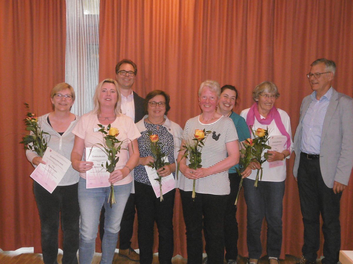 vordere Reihe: (v.l.n.r.:)Beisitzerin Brigitte Gasteiger, Beisitzerin Inge Klier, Schatzmeisterin Ruth Manthey, Beisitzerin Ulrike Schlund und Schriftführerin Agnes Reuß