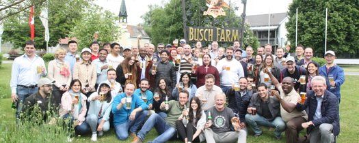 „We are here for the beer!“, tönt es aus rund 30 bestens gelaunten Kehlen. Auf den ersten Blick ist es ein recht bunter Haufen, der für die Kameras vor dem Logo der Buschfarm in Hüll posiert: Tatsächlich sind sie aber die Zukunft vieler namhafter Biersorten. Regelmäßig macht die Anheuser-Busch InBev mit ihrer „Global Brewmaster Summit“ halt in Wolnzach. Hier lernt deren zukünftige Elite aus der ganzen Welt, was dem Bier seine Seele verleiht.