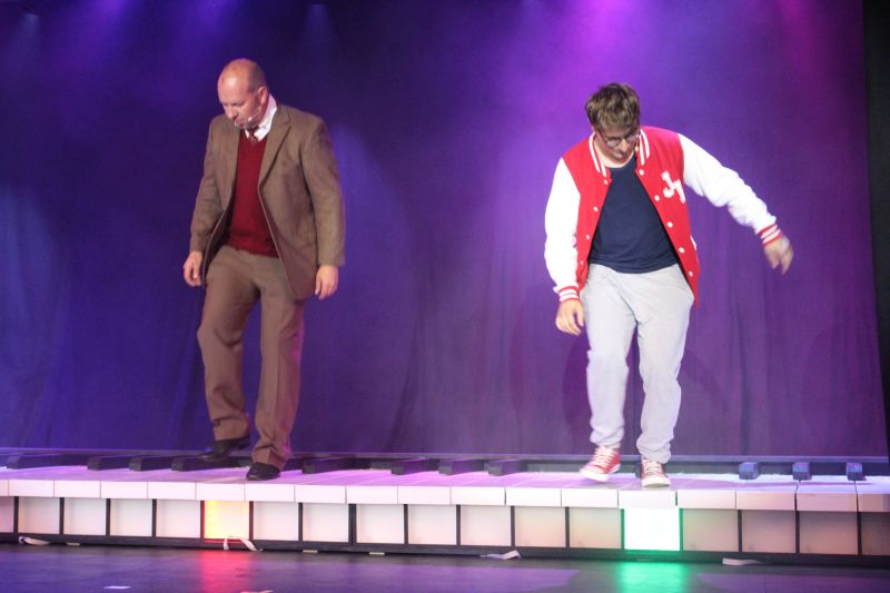 Aufwendige Szenen wie auf dem Jahrmarkt oder im Spielzeugladen prägen das ganze Musical. Als Highlight spielte das Kinderensemble und verzauberte das Publikum vom ersten Augenblick an. Um den Kindern aber nicht zu viel zuzumuten spielen je 13 Mädchen und Buben im Wechsel. Auch die Hauptrollen sind zweimal besetzt. So spielte am Premierenabend Maximilian Meiler (Zweitbesetzung Yaris Ingalls)den kleinen Josh, seinen besten Freund Billy Kopecki spielte Louis Braun (Christian Scholz-Wittig). Die Rolle des erwachsenen Josh übernahm Stefan Hofstetter (Alexander Schachtner)und die seiner Mutter Mrs. Baskin Franziska Reimer (Katharina Schweigard). Susan Lawrence spielte Katrin Fischer (Carina Raupach), die beiden Rollen von George McMillan und Zoltar spielte Florian Schwaiger und Timm Mannott war Paul Seymour. Das Erwachsenen-Ensemble glänzte in stetig wechselnden Kostümen auf der Bühne, sang und tanzte und war schon bei den Proben mit unerschütterlichem Willen bei der Sache. Was nicht zu sehen war, aber zu hören, war das ausquartierte Musikorchester unter der Leitung von Thomas Hofstetter. Sie spielten nicht auf der Bühne, sondern im hinteren Bereich der Hopfenlandhalle und waren nur über Monitor mit den Darstellern verbunden.