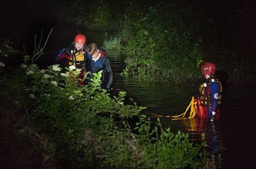Bei Dämmerungseinbruch wies Thomas Roth als Übungsleiter die Jugendlichen der Wasserwacht in die Übung ein. Dazu versenkte er im Vorfeld gleich mehrere Übungspuppen in einem Weiher, um die Suchaktion so realistisch wie möglich zu gestalten. „Sechs Mitglieder unserer Jugend-Einsatzgruppe spielen betrunkene Jugendliche, von denen einige auf ihrem Rückweg nach Hause oder beim Schwimmen im Weiher in Wassernot geraten sind“, erläutert Roth.