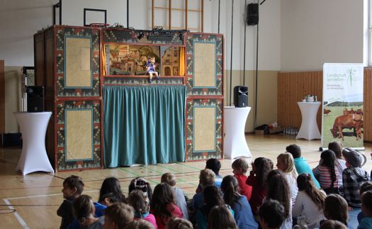 Landrat Martin Neumeyer bedankte sich beim Landschaftspflegeverein VöF, vertreten durch die Gebietsbetreuerin Franziska Jäger, von dem nicht nur die Idee für dieses Projekt stammt. Er selbst habe das Ganze schon zweimal gesehen und findet es nach eigenen Worten "sensationell". Mit den Kasperltheater-Aufführungen beweise der Verein einmal mehr, dass er auch unkonventionelle Wege bei der Umweltbildung gehe.