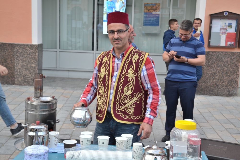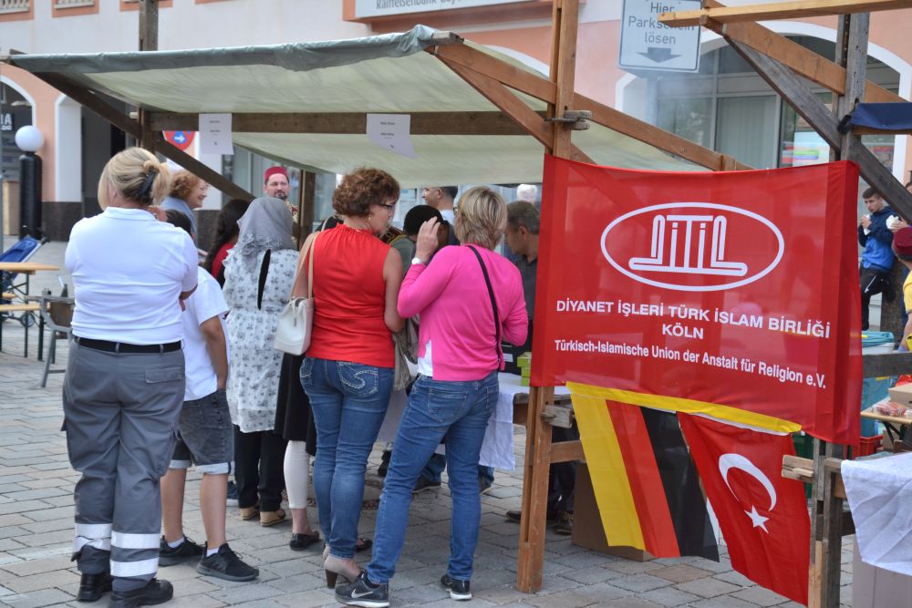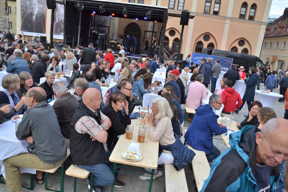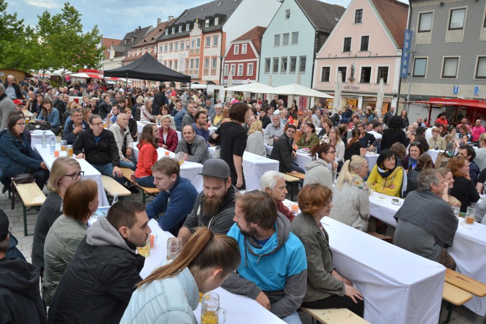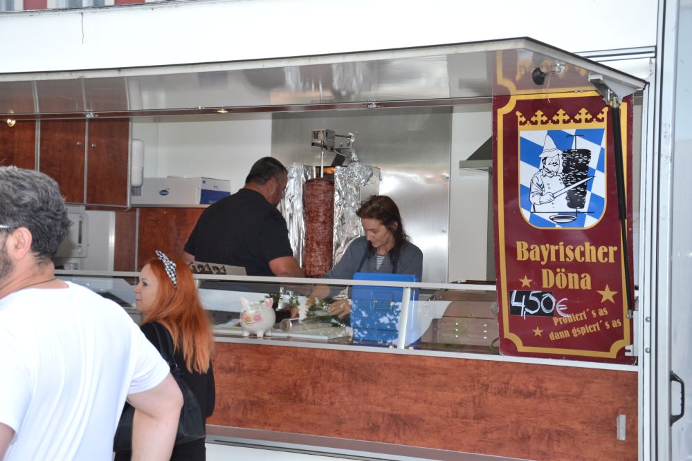 Die Biertische vor dem Rathaus waren fein mit weißem Tuch gedeckt und die Besucher ließen sich Bier, Wein oder Mixgetränke schmecken und die ausländischen Leckereien wie Pizza, bayerischen Döna, ungarische Langos oder türkische Dürüm-Spieße gingen weg wie die berühmten „warmen Semmeln“, wobei die Warteschlange beim türkischen Stand am längsten war. Wie immer waren gerade auch die Kulturvereine mit Verpflegungsständen vertreten.